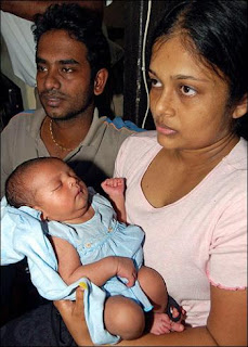 Tears ran down the parents' cheeks while week-old Gavishra, dressed in a blue shirt, slept cradled in his mother's arms as photographers mobbed them.