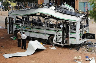 LTTE terrorists exploded a bomb in side a public transportation bus targeting civilians in Dambulla in the morning of February 2, 2008. (YouTube Video)