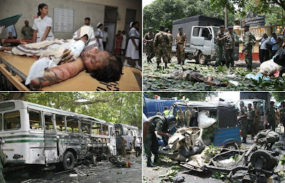 At least ten people were killed and 95 others wounded in a Tamil Tiger suicide bombing in the capital Colombo near Lake House and Sambuddhaloka Buddhist Viharaya, Fort, officials said Friday. Eight police officers and two civilians -- plus the attacker -- died when a motorbike rammed into a bus ferrying police and exploded. The massive blast was heard across the city.